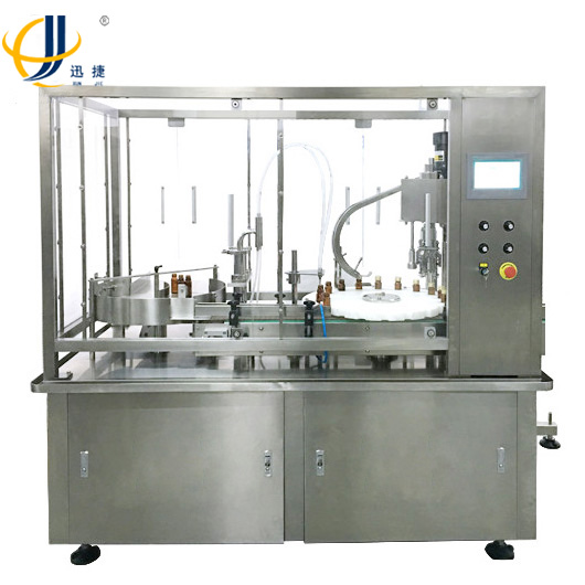 液體灌裝鎖蓋一體機是集進瓶、理蓋、上蓋、旋蓋、出瓶于一體。采用抓蓋定位旋蓋。在旋蓋的過程中無傷瓶、無傷蓋現(xiàn)象、旋蓋效率高,可以和外同類產品相媲美。零部件的使用壽命長、運轉平穩(wěn)、噪音低、使用范圍大、旋蓋率高。表面進行了拋光處理,美觀大方;本機生產速度無極變頻可調,利于裝配生產線,是各大、中型包裝車間的理想選擇。 競爭,加快了企業(yè)的進步,推動了社會的發(fā)展,同時,也促成了包裝設備的成功。包裝設備在包裝的過程當中,包裝的質量是非常重要的,包裝質量決定產品的質量和企業(yè)的信譽,進一步影響到企業(yè)的長久發(fā)展。包裝設備具有很好的性能和良好的設計構造,所以在包裝過程當中可以減少包裝質量和產量上的顧慮,沒有了后顧之憂企業(yè)就可盡心的大步的向前走。包裝設備在操作過程中更具有操作正確性、高效率和安全性,能夠為產品包裝出好的精美的包裝。